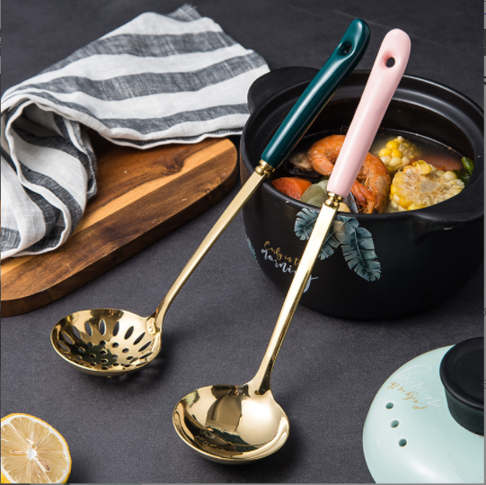 EMOER Mirror Polished Stainless Steel Ceramic Soup Spoon Colander