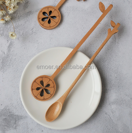 2 Pcs Lemon Shape Wood Stirring Spoons